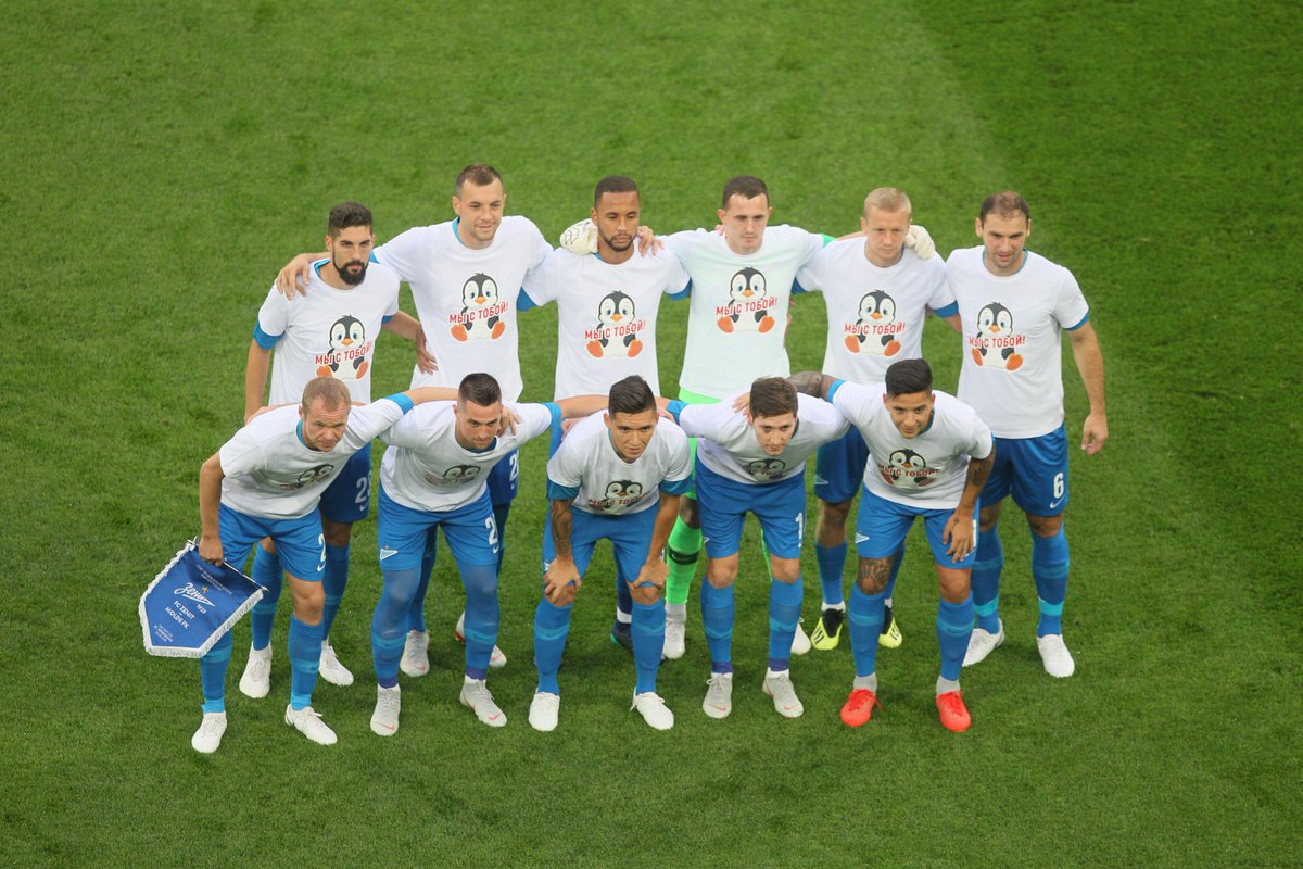 Вы это видели? / «Зенит» поддержал Нобоа. Разместили на стадионе стену с пожеланиями и вышли в футболках с пингвинами