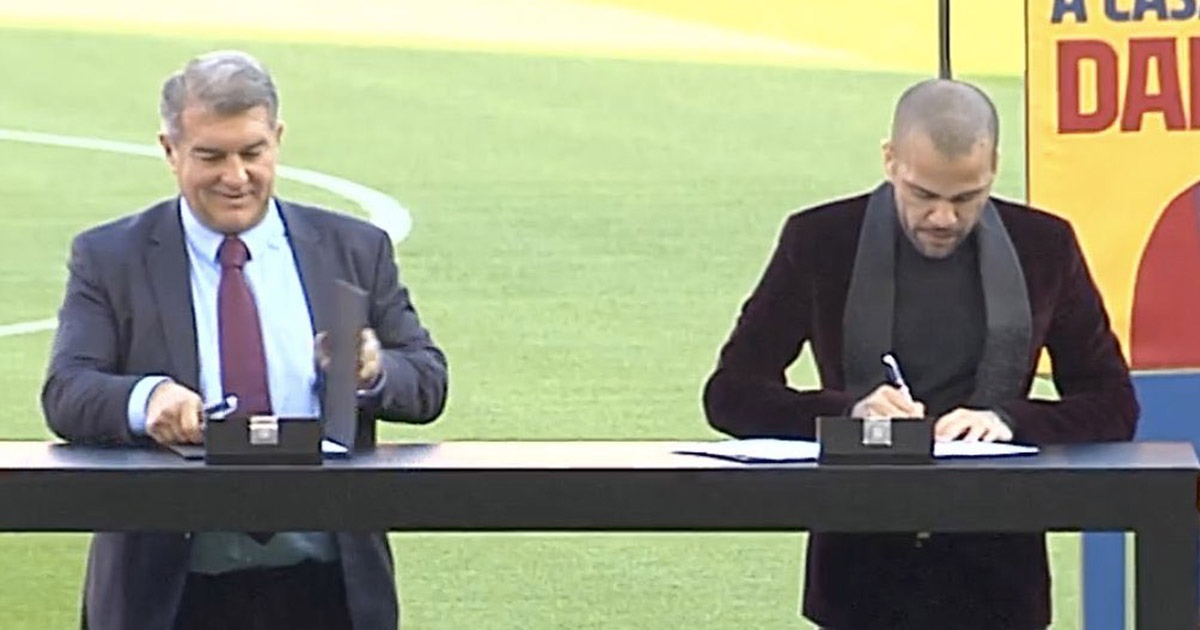 FC Barcelona / Дани Алвес подписал контракт с «Барселоной» на поле «Камп Ноу»: лучшие фото торжественного момента