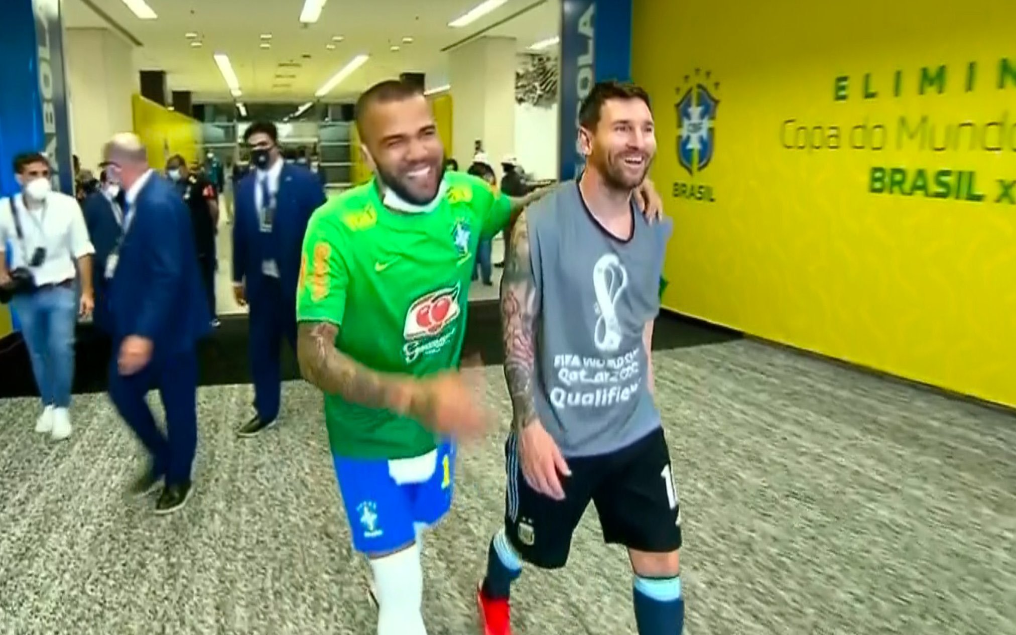 ПСЖ / Встреча старых друзей. Месси и Да Алвес мило пообщались во время скандального матч Бразилия – Аргентина