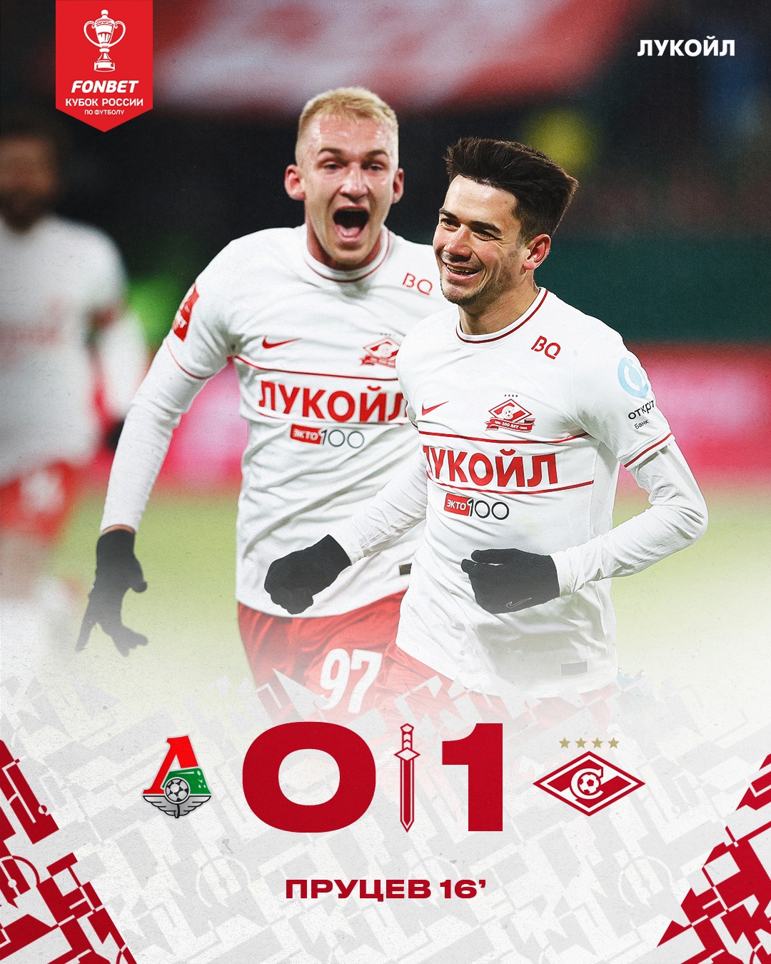 «СПАРТАК» ОБЫГРАЛ «ЛОКОМОТИВ» В ПЕРВОМ ОФИЦИАЛЬНОМ МАТЧЕ ГОДА. ЕДИНСТВЕННЫЙ ГОЛ НА СЧЕТУ ДАНИЛА ПРУЦЕВА. ОТВЕТНАЯ ВСТРЕЧА 1/4 ФИНАЛА ПУТИ РПЛ ФОНБЕТ КУБКА РОССИИ ПРОЙДЕТ НА «ОТКРЫТИЕ БАНК АРЕНЕ» 27 ФЕВРАЛЯ.