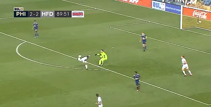 Смешной гол из второй лиги США: вратарь бросил мяч, но попал в соперника