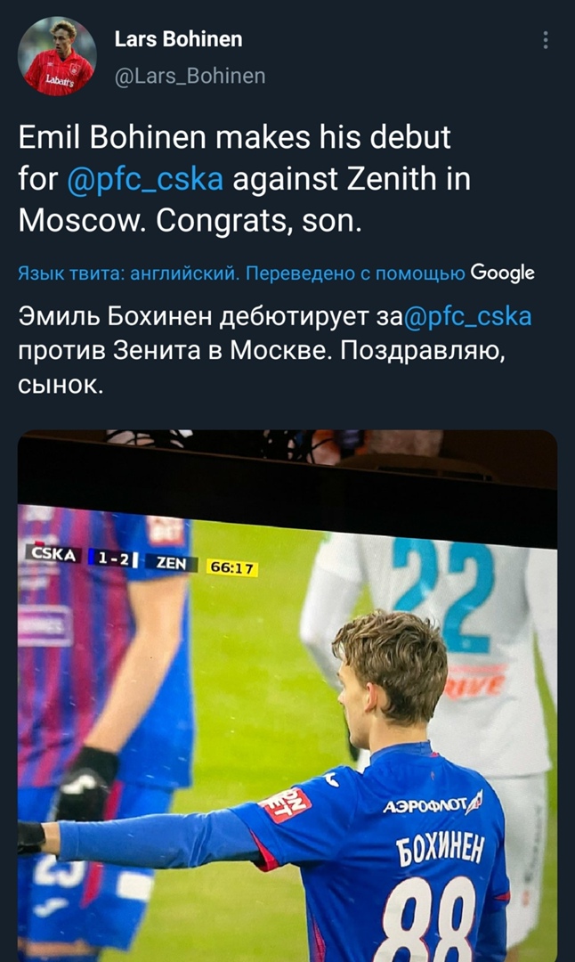 Во вчерашнем матче против Зенита новичок ЦСКА норвежец Эмиль Бохинен дебютировал в составе своей новой команды.