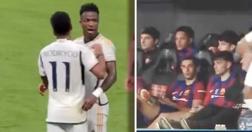 FC Barcelona / «Если этот мудак скажет что-нибудь, дам ему по ***(лицу)». Микрофоны уловили слова игрока «Барсы» на жесты Винисиуса. Бразилец издевался над скамейкой