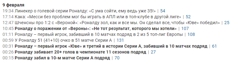 Но оставим эту незначительную новость, как учил классик, и начнём восторгаться несравненным, выдающимся, потрясающим роналду, который там забил гол в ворота Вероны! Этот гол не спас юве от поражения, но всё равно, роналду – ... Читать дальше величайший, гениальнейший, прекраснейший футболист!!! Опубликуем по этому поводу 100500 новостей!!!!!