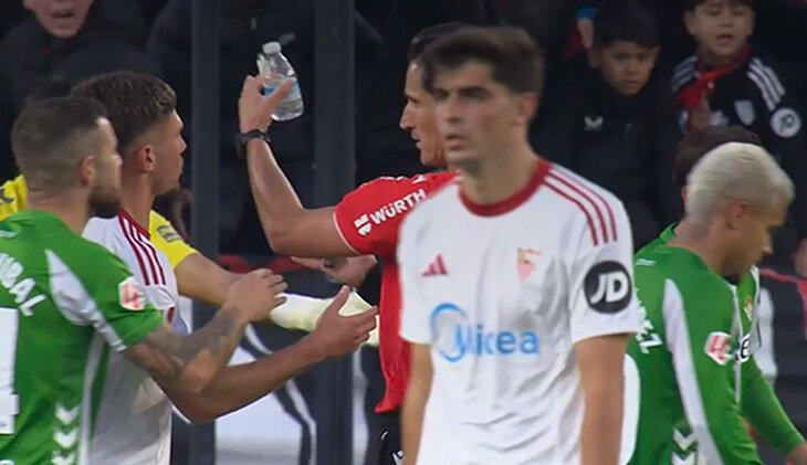 Вы это видели? / Из-за пластиковых бутылок на 10 минут прервали дерби Севильи. Судью не отговорили даже пострадавшие