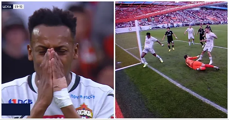 Ужасное невезение ЦСКА! Мяч летел в ворота, но Мойзес из офсайда зачем-то его тронул 🤯