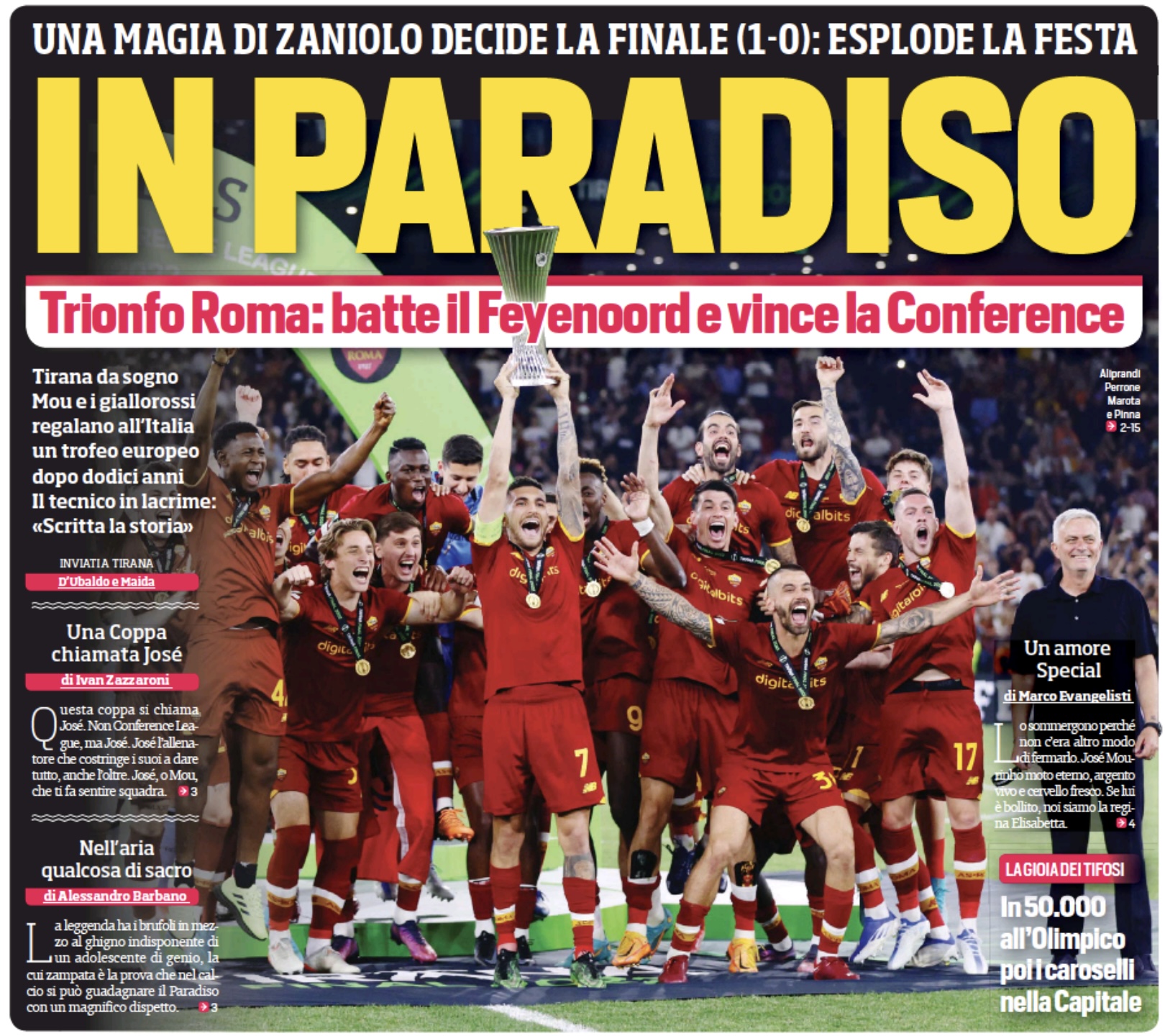 Победа «Ромы» в Лиге Конференций, операция Златана, переговоры «Юве» по Ди Марии, а также трансферные планы «Интера» – в обзоре заголовков итальянских спортивных изданий в блоге «В гостях у Кальчо».
