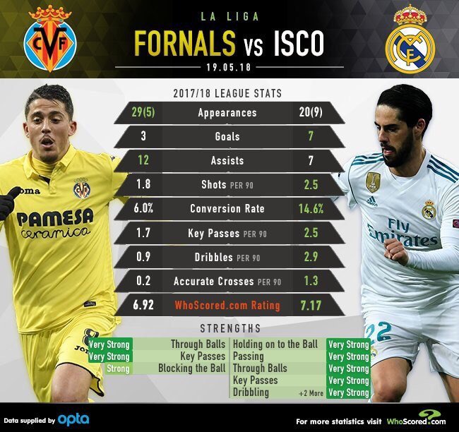 Сравнительная статистика #Пабло Форнальса и #Иско в текущем сезоне Ла Лиги.