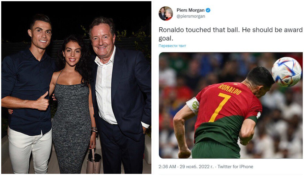 United Tweets / Помните Пирса Моргана, которому Роналду дал то самое интервью? Криш написал ему из раздевалки и пожаловался, что у него отобрали гол Уругваю 🤦🏼♂️