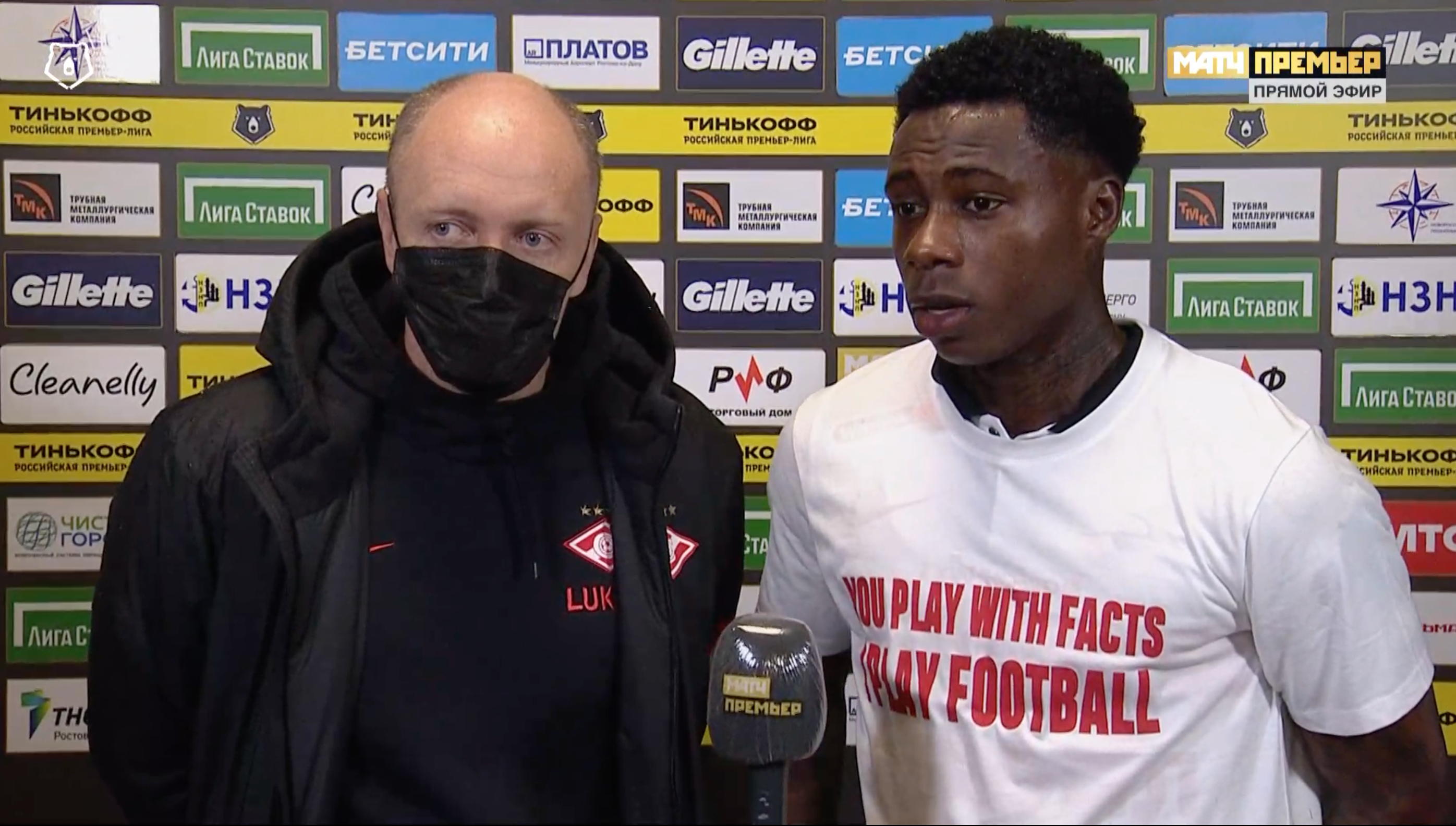 Россия-2025 / «Вы играете фактами, я играю в футбол». Промес ответил «Матч ТВ» – надел футболку с таким принтом на флэш-интервью