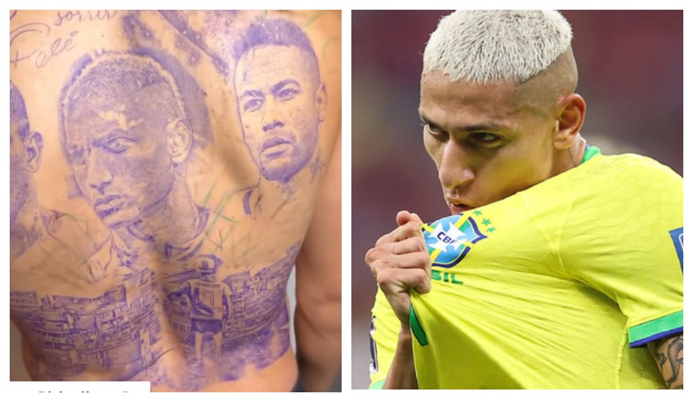 Гаспачо / Ришарлисон сделал татуировку со своим изображением у себя на спине. Про Роналдо, Неймара и Пеле форвард тоже не забыл😱