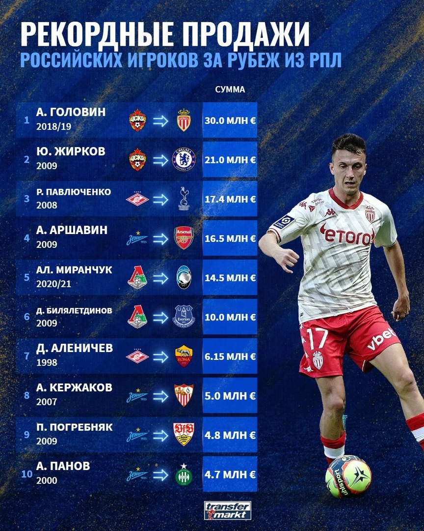ЦСКА - Онлайн / Рекордные продажи российских футболистов за рубеж из клубов Российской Премьер-Лиги