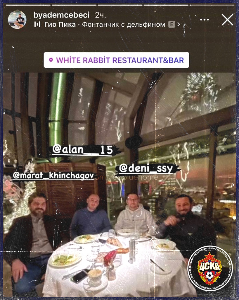 ЦСКА - Онлайн / Агент Юсуфа Языджи Адем Чебеджи ужинает в московском мишленовском ресторане «White Rabbit»