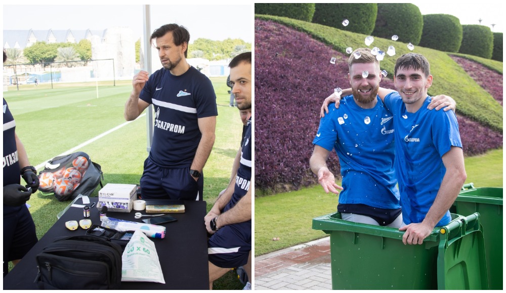 Все о Зените / Семак улыбается, Малком счастлив, а Бакаев и Сергеев в обнимку залезли в бак со льдом: «Зенит» начал сбор в Катаре