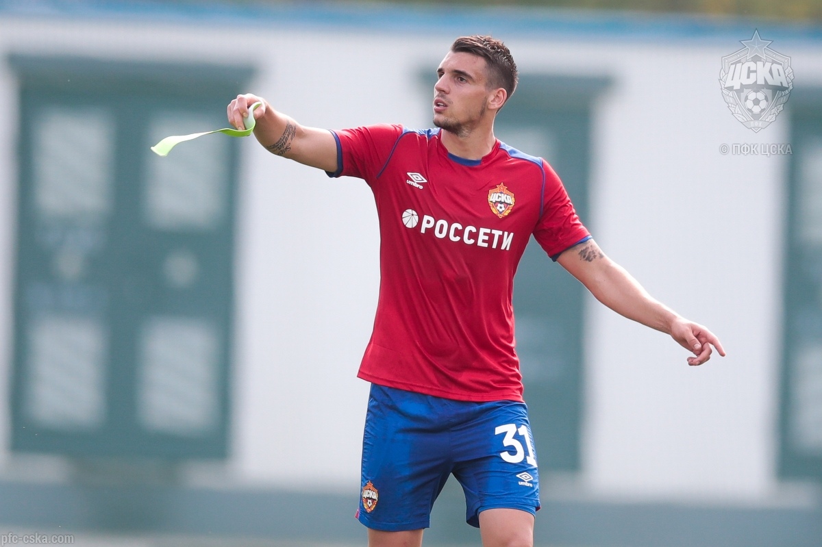 Защитник ЦСКА Звонимир Шарлия не принимает участия в тренировке армейцев накануне игры 1-го тура группового турнира Лиги Европы с «Лудогорцем».