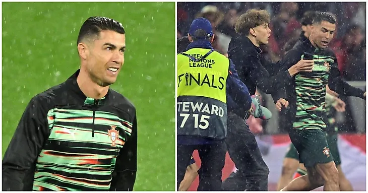 📸 Град и прорвавшийся на поле фанат. Роналду успел настрадаться перед матчем с Германией
