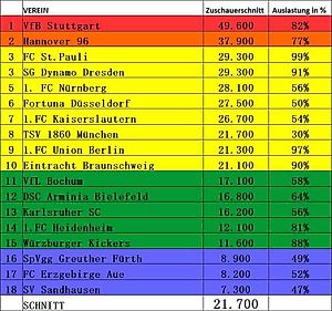 Турнирная таблица посещаемости Второй Бундеслиги. Так-то