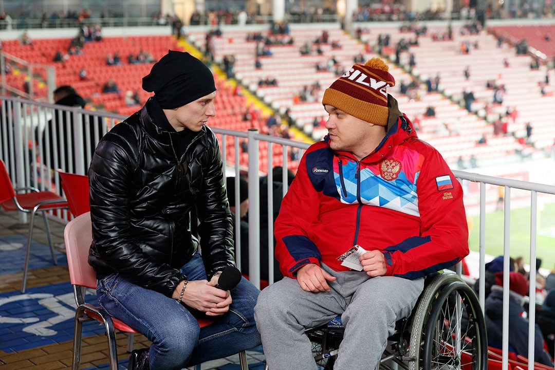 30-летний болельщик «Спартака» из Рязани Андрей Сачков передвигается на коляске, но это не мешает ему посещать матчи любимой команды — на стадионе «Открытие Арена» есть все необходимое для обеспечения комфортной безбарьерной среды.