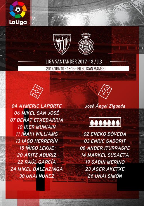 Arrizabalaga, Bóveda, Saborit, Laporte, San José, Beñat, Iturraspe, Muniain, Williams, Iago Herrerín, Susaeta, I.Lekue, Sabin Merino, Aduriz, Raúl García, Aketxe, Balenziaga, Unai Simón, Córdoba, Núñez.
