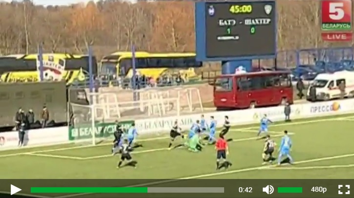 Это повтор спорного момента, в котором судьи не засчитали гол в ворота БАТЭ в матче за суперкубок Беларуси. Да, только с таких ракурсов в замедленном повторе во время трансляции пытаются рассмотреть фол или, внимание, ОФСАЙД. Да, в 2016 году футбол в Беларуси снимают 1-2 камерами с трибуны. Да, это такая картинка у всех на ТВ.