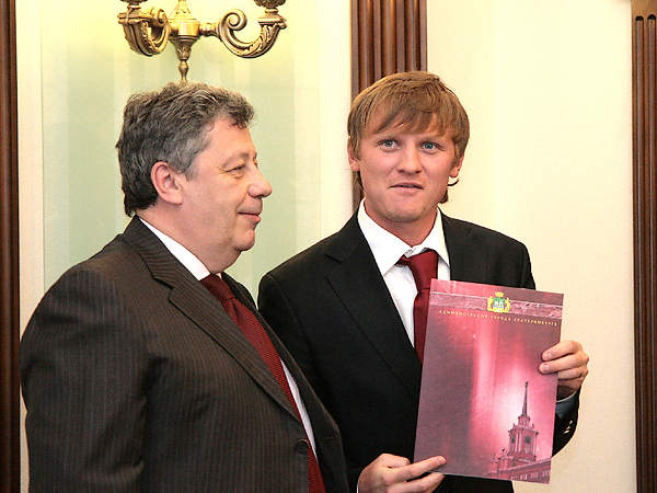 А вот Константин на торжественном приеме у теперь уже бывшего мэра Екатеринбурга Аркадия Чернецкого. Теперь Чернецкий сенатор.