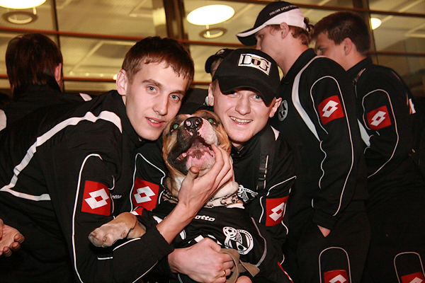 А вот уже и следующий сезон. Эта фотография сделана, по-моему, после домашней игры с московскими армейцами.