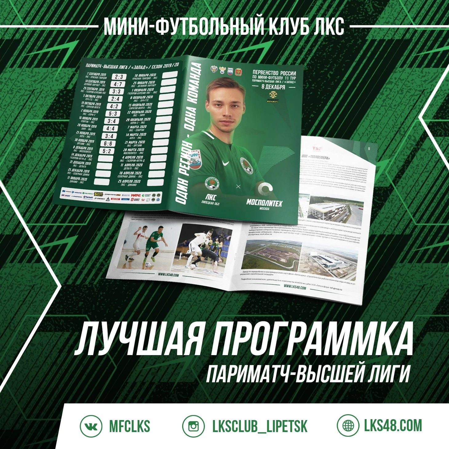 Поздравляем коллег и желаем им дальнейших творческих успехов! С лауреатами Париматч - Суперлиги и женского Чемпионата России можно ознакомиться на сайте АМФР. Над предматчевыми программками МФК ЛКС в 2020 году для вас работали пресс-атташе Владимир Пономарёв, Алексей Орешников и дизайнер Олег Возисов. Все программки домашних матчей ЛКС в сезоне 2019/20 доступны для скачивания.