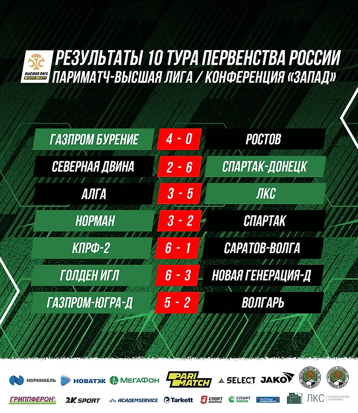 Результаты и обзоры матчей 10 тура Париматч - Высшей лиги Первенства России по мини-футболу среди мужских команд, конференция «Запад», сезон 2020/21.