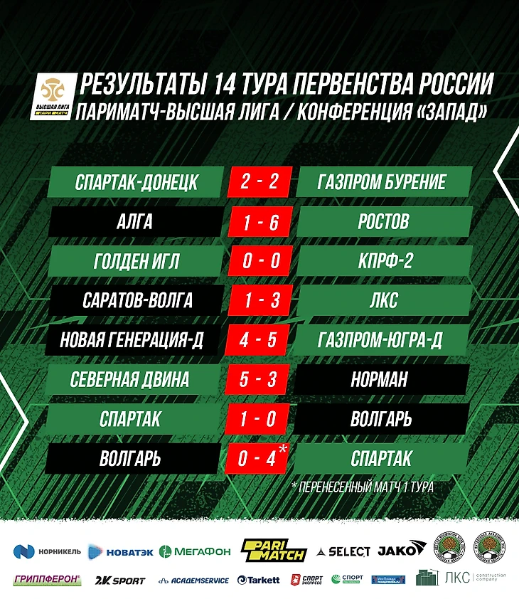 Также состоялся перенесенный матч 1 тура МФК "Волгарь" (Астрахань) - МФК "Спартак" (Москва) - 0:4.