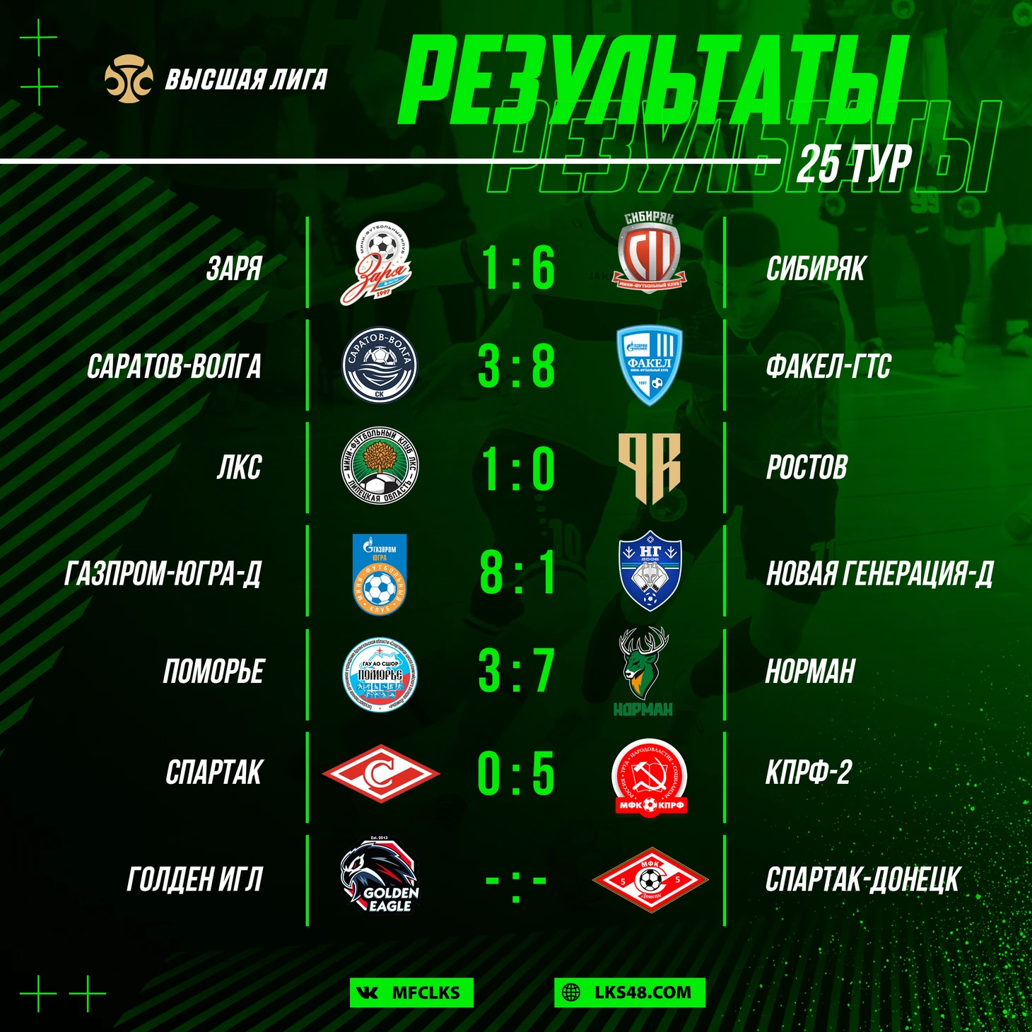 Мини-футбол: результаты и голы 25 тура Высшей лиги