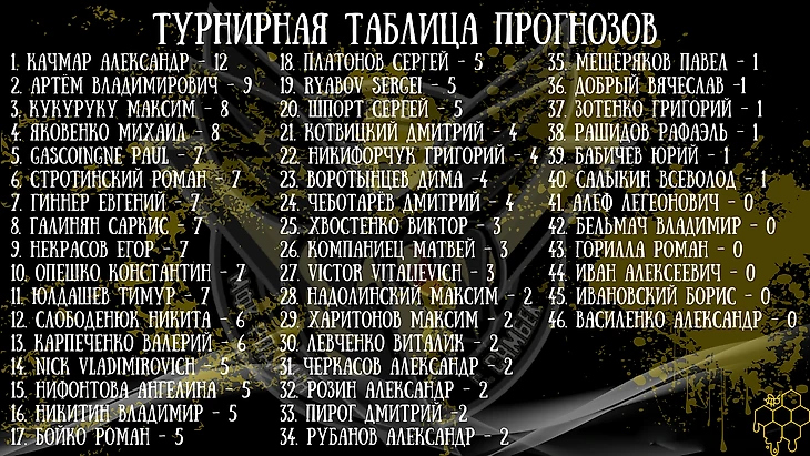 Турнир прогнозов продолжает набирать обороты. Битва за лидерство обостряется с каждым туром👍