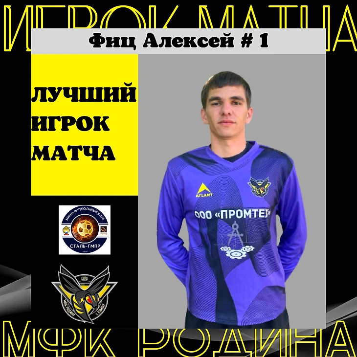 Лучшим игроком матча 8-го тура против МФК "Сталь-ГМПР"🏭