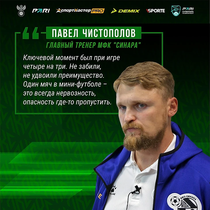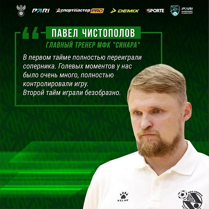 Главный тренер МФК «Синара» Павел Чистополов подвёл итоги противостояния с ЛКС во втором туре PARI – Суперлиги: