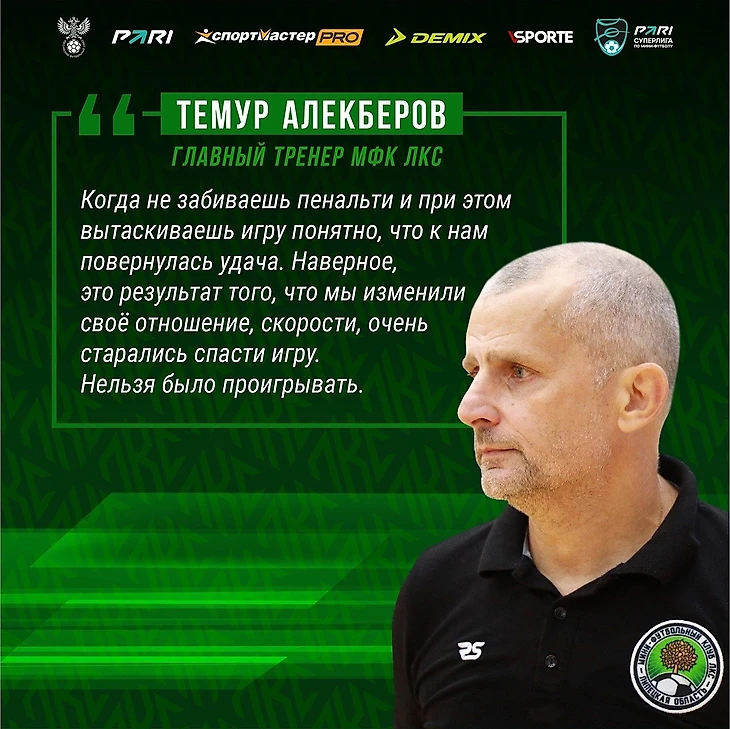 Главный тренер мини-футбольного клуба ЛКС Темур Алекберов прокомментировал результат второго матча 2-го тура PARI – Суперлиги с «Синарой»: