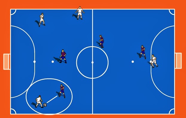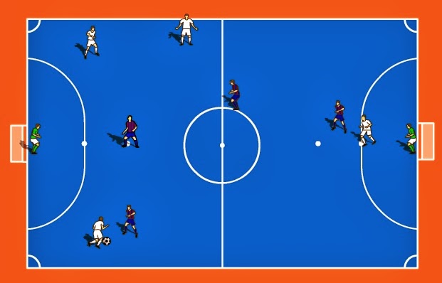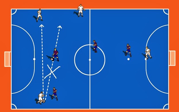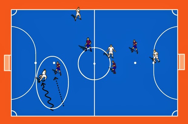 В силу больших физическим усилий анаэробной направленности, движения игроков, пытающихся сбросить опеку противников и в силу мышечной усталости, тактические действия на ограниченном пространстве для игрока с мячом в плане техники будут недостаточны. Поэтому, старайтесь перекрывать линию передачи вперед, заставляя игрока смещаться на фланг. Таким образом, мы сохраним оборонительные позиции.