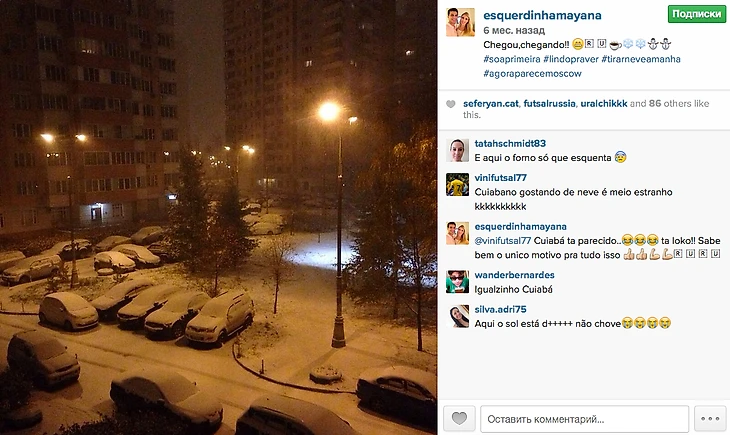 Не надо думать, что первый снег я увидел в России. На юге Бразилии его запросто встретить, в Сеговии – тоже. А в часе езды от Мурсии есть Сьерра-Невада – испанский горнолыжный курорт, мы ездили туда с женой. Правда, в моем контракте есть пункт, который запрещает мне все опасное – лыжи, сноуборд, мотоцикл. Поэтому она каталась на горных лыжах, а я просто катался за ней вверх-вниз на подъемниках и терпеливо ждал.
