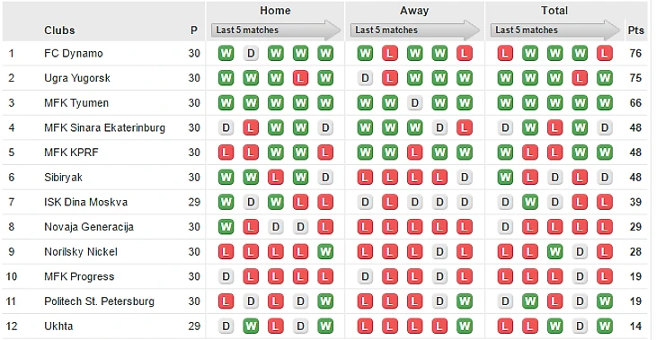 Турнирное положение: