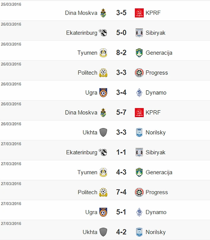 В Люберцах встречались лидеры чемпионата - "Югра" и "Динамо". В обеих играх счет открывали югорчане, однако в первом матче победу одержали динамовцы. Во втором матче "Югра" разгромила москвичей благодаря покеру Марсенио.