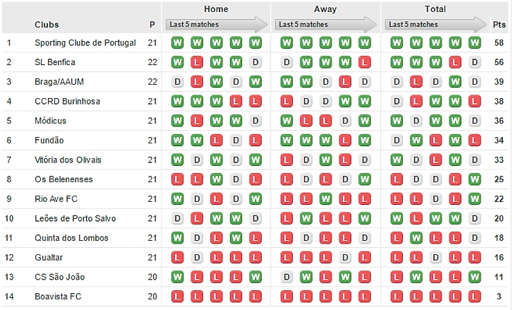 Все результаты португальского тура: