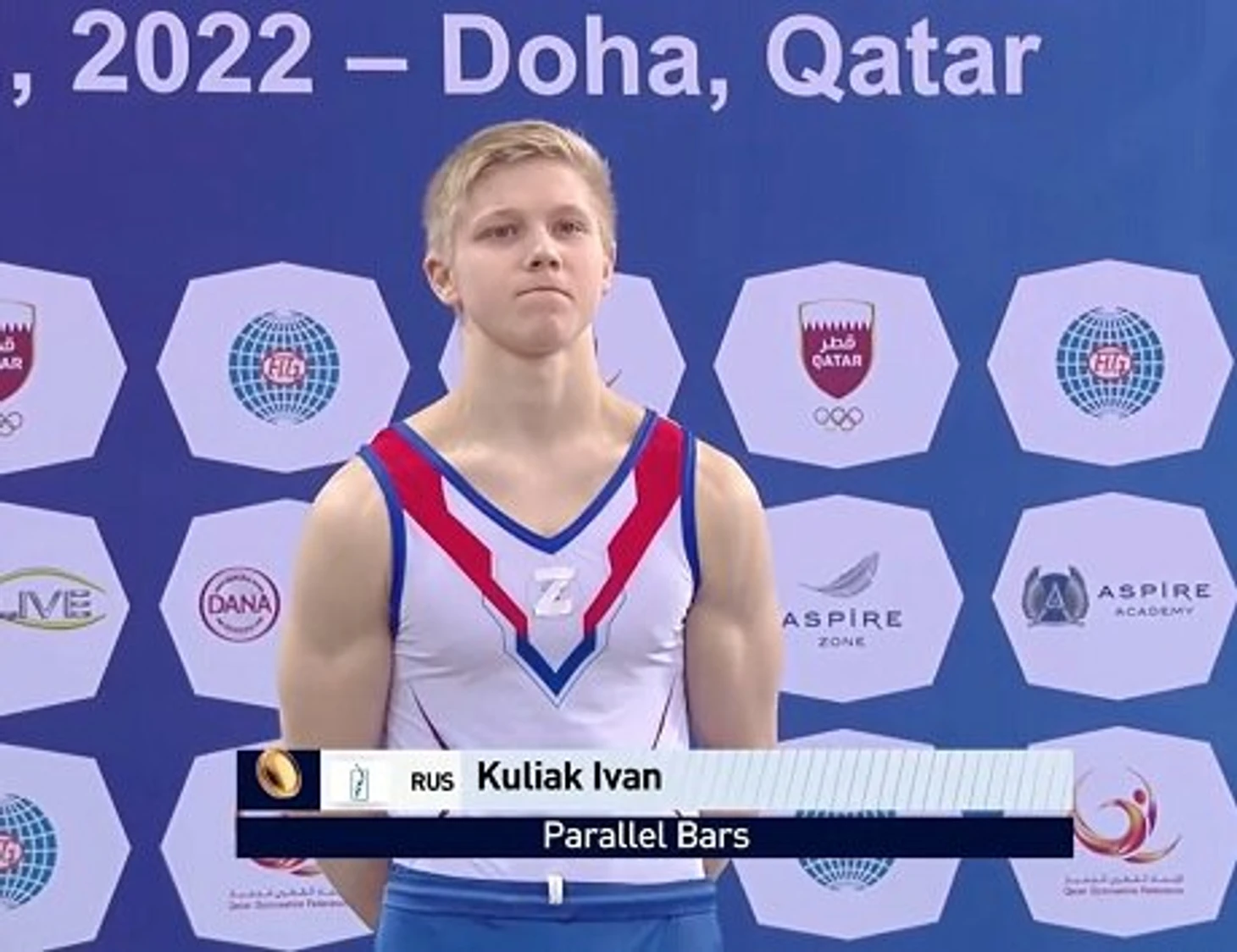 Российский гимнаст Иван Куляк вышел на церемонию награждения Кубка мира с буквой Z на груди.