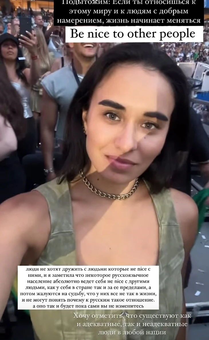 Хочу отметить, что существуют как адекватные, так и неадекватные люди в любой нации», – написала спортсменка.