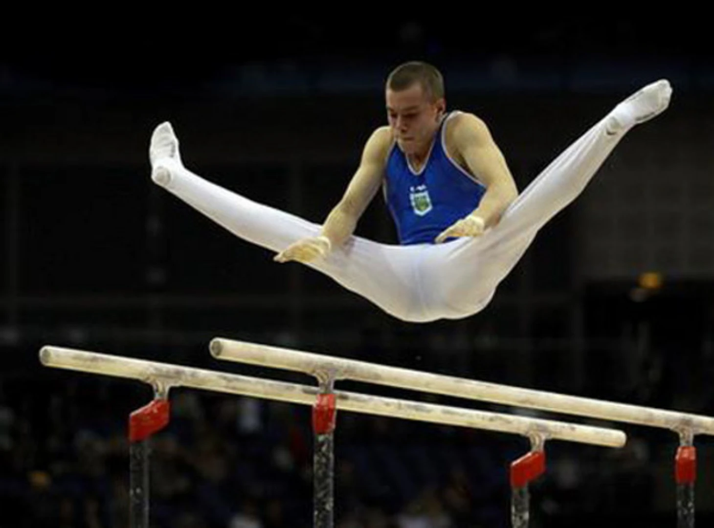 Давид делает брусья лучше всех! Он начинает с двух сложнейших элементов из упора на руках группы Е – Диамидова и оберучного. Оба выполнены прекрасно. Его фирменный шикарнейший перелёт Бавсара и в конце небольшой недобив до стойки на оберучном. Оценка 15,266 (сложность 6,4, техника 8,866).