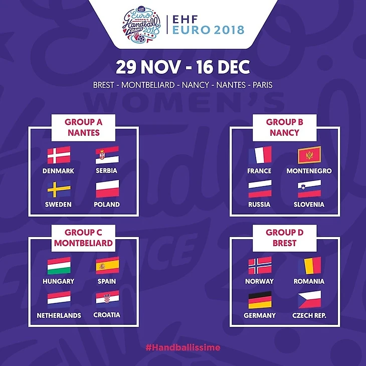 Тренерский штаб, гандболистки, а равно и поклонники женской сборной России ближайшие полгода с особым вниманием будут следить за командами Франции, Черногории и Словении. Именно они станут соперницами россиянок на групповом этапе чемпионата Европы, который пройдет во Франции с 29 ноября по 16 декабря. Так постановила жеребьевка, состоявшаяся во вторник в Париже.
