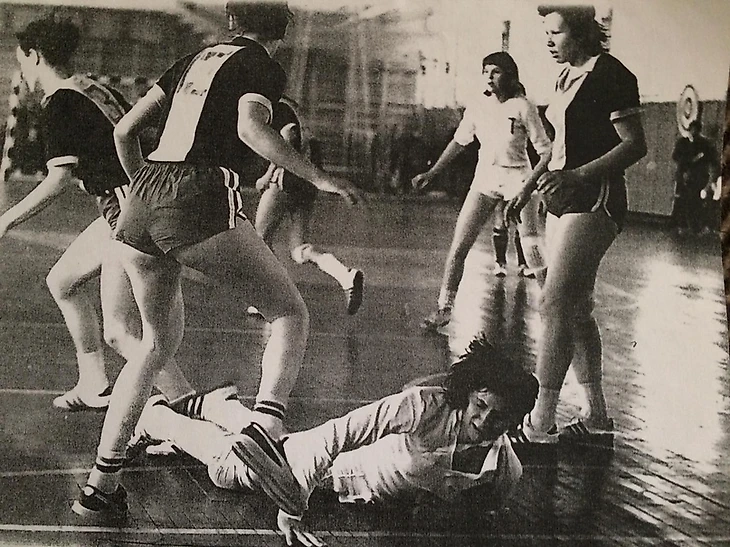 — Это первый наставник красноярских гандболисток. В пединституте он организовал девичью команду под патронажем общества "Буревестник". Набирал рослых и сильных: баскетболисток, легкоатлеток, лыжниц. Заиграли, стали брать медали на разных союзных турнирах.