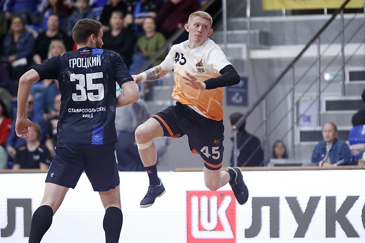 Этот отрезок позволил ставропольцам выйти вперед на три балла. Ну а через несколько мгновений после потери «Сунгуля» Андрей Беляев делает преимущество уже угрожающим. Сбил эмоциональный пыл хозяев Александр Аркатов, который не только забил тяжелый бросок, но и заставил защитника нарушить правила и удалиться. На воротах появился уже третий голкипер Евгений Лысаков и начал с сейва, а Александр Аркатов поразил пустые ворота и сократил гандикап до двух мячей. Лысаков еще и взял пенальти от Виталия Мазурова, а Данил Мерц подтащил свой коллектив на расстояние выстрела. Но когда закончилось удаление южан, началось удаление у уральцев. Третынко и команда снова увеличили свое преимущество до трех мячей. Последние десять минут оказались самыми напряженными. Здесь царили оба вратаря, помогая своим коллективам идти к заветной победе.