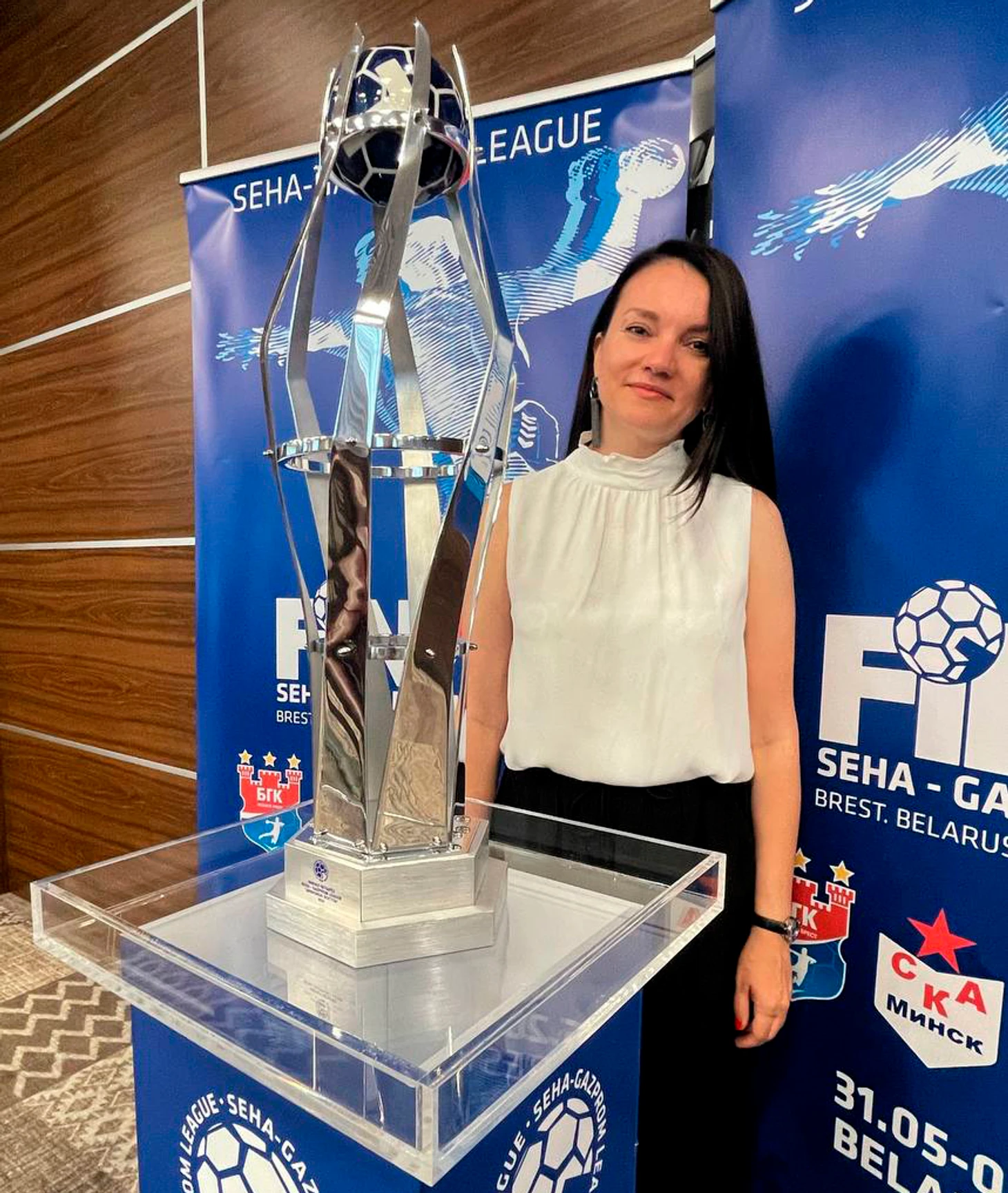 Для «Дивизиона Восток» в 2024 году был разработан кубок, использующий мотивы гжельской росписи. В 2024 году я его презентовала журналистам так: «Основная идея кубка - Главную награду «Дивизиона Восток» SEHA – Gazprom League мы решили сделать в старинной технике гжельской росписи. Яркая бело-голубая гжель не просто совпадает с корпоративными цветами SEHA – Gazprom League. Искусство гжели очень точно отражает ценности бренда. Народная традиция через века пронесла любовь к активным играм.»