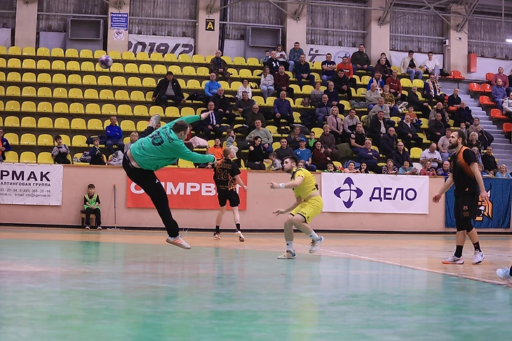 К 15-й минуте усилиями Имана Джамали расстояние между коллективами составлял всего один гол. Но в быстрой атаке, после сейва Владислава Мартыненко, точно попал в цель Евгений Дудик и восстановил разницу в два мяча. Вязкая защита обоих коллективов не позволяла сильно изменять счет на табло. Разница составляла то одно, то два попадания. На три мяча удалось пристроить СКИФ на 21-й минуте, опять же после спасения Владислава Мартыненко, который на то время имел 50% надежности. Он взорвал трибуны, когда парировал семиметровый от «заклятого друга» «Сунгуля» Ивана Пасенова.