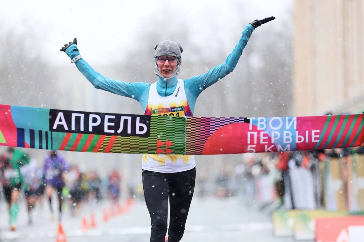 Несмотря на снегопад, на старт вышли около 5000 бегунов.