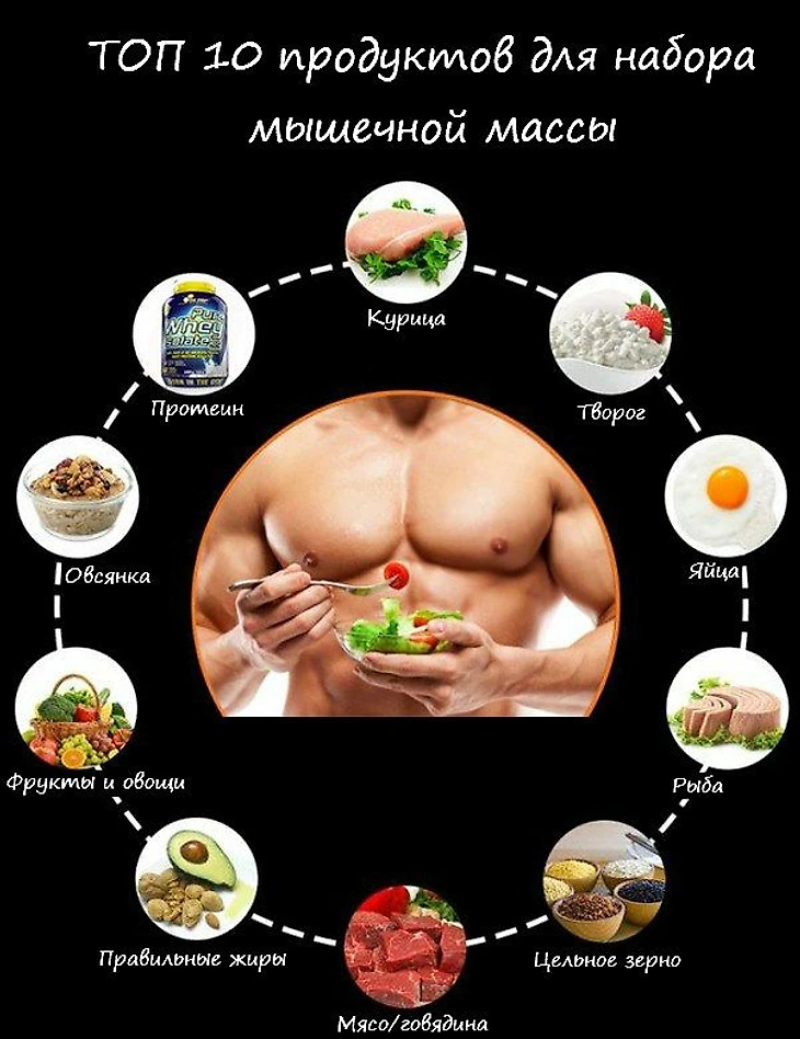Важно! Употребляйте в пищу более калорийную пищу, которая поможет быстро восстановить и приумножить израсходованные калории. Рацион должен включать в себя полноценное потребление разнообразной пищи. Читайте подробнее в статье «Как питаться во время тренировок».