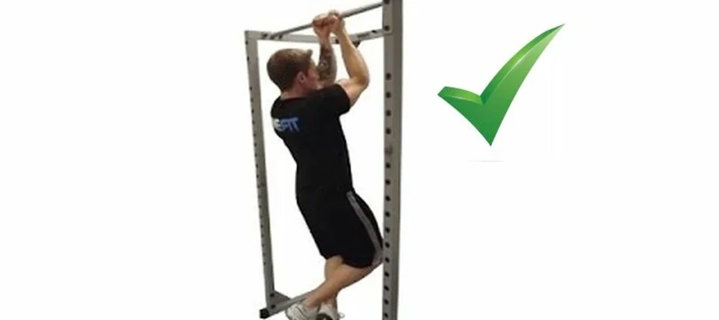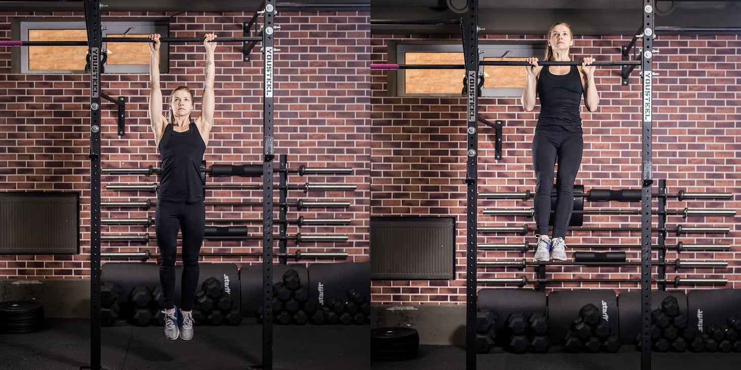 Правильная техника начинается с исходного положения. Постановка рук на уровне плеч, хват прямой. Турник должен быть достаточно высоким, чтобы в вертикальном положении ноги не касались земли.